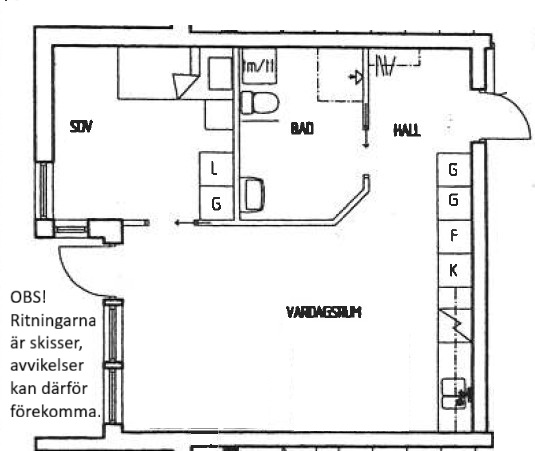 • 1 rum + alkov och kök